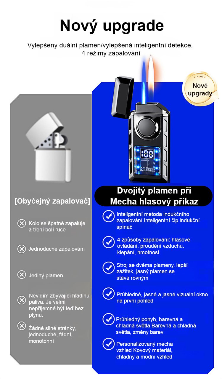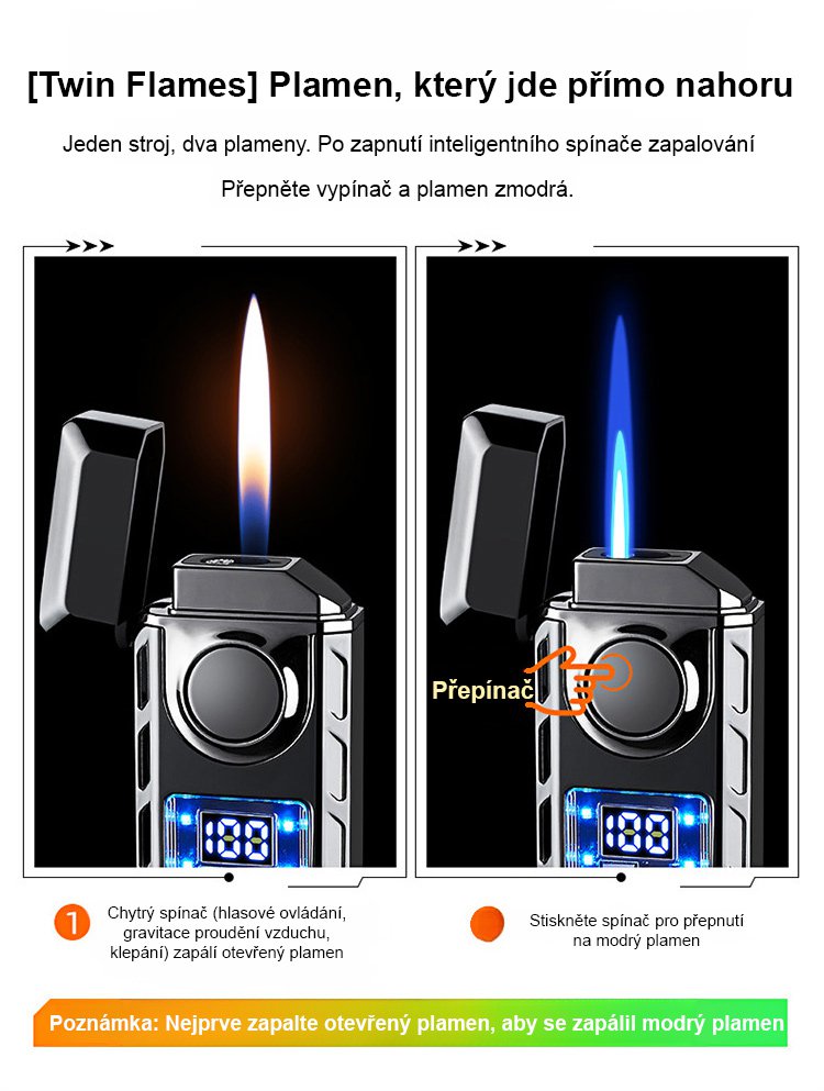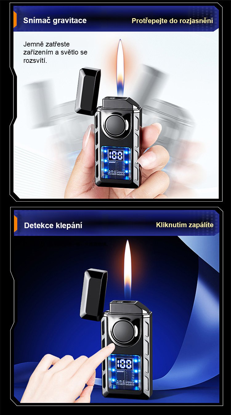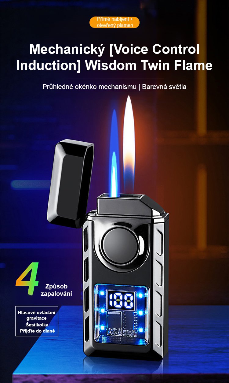 Hlasem ovládaný inteligentní zapalovač odolný proti větru.